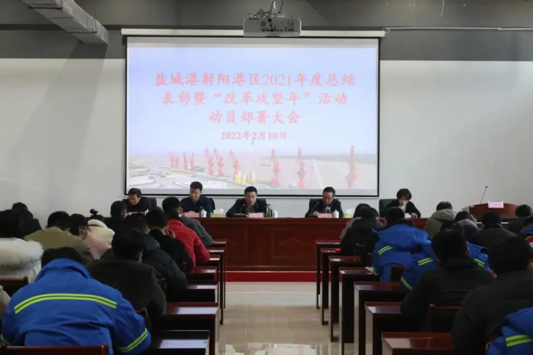 為貫徹落實(shí)鹽城港集團(tuán)“改革攻堅(jiān)年”活動動員大會精神,全面加快推進(jìn)年度工作目標(biāo)落實(shí),2月10日上午,射陽港區(qū)召開落實(shí)集團(tuán)“改革攻堅(jiān)年”活動動員大會精神暨2022年工作部署會議,港區(qū)領(lǐng)導(dǎo)班子、機(jī)關(guān)、風(fēng)電裝備進(jìn)出口港公司全體員工出席會議。