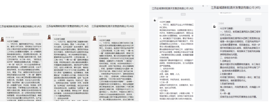 思想的統(tǒng)一引領(lǐng)行動(dòng)的統(tǒng)一。近階段,重點(diǎn)圍繞應(yīng)知應(yīng)會(huì)常識(shí),每天早上九點(diǎn),港區(qū)綜合部專人將摘編好的應(yīng)知應(yīng)會(huì)知識(shí)點(diǎn)發(fā)布到工作群,供所有員工學(xué)習(xí)。內(nèi)容涵蓋領(lǐng)導(dǎo)重要講話、時(shí)政熱點(diǎn)、企業(yè)文化、崗位職責(zé)等,員工結(jié)合自身工作安排進(jìn)行學(xué)習(xí)。員工們紛紛表示,比起自己平時(shí)雜亂學(xué),重點(diǎn)知識(shí)點(diǎn)的匯總學(xué)習(xí)猶如“啟明星”,輕松從“要我學(xué)”轉(zhuǎn)變?yōu)椤拔乙獙W(xué)”,在學(xué)習(xí)中不斷反省自身不足,查漏補(bǔ)缺立行立改,為高效率高標(biāo)準(zhǔn)完成工作夯實(shí)思想根基。