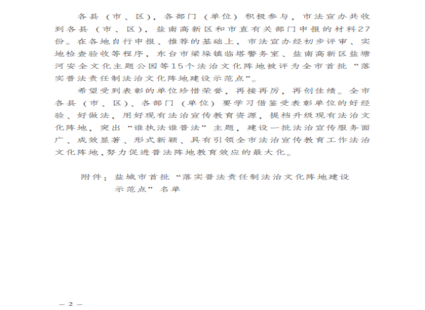 近期,由鹽城市委宣傳部、市委依法治市辦、市法宣辦、司法局4個(gè)部門單位發(fā)布關(guān)于公布鹽城市首批“落實(shí)普法責(zé)任制法治文化陣地建設(shè)示范點(diǎn)”的通知,江蘇鹽城港射陽港開發(fā)集團(tuán)有限公司榮獲相關(guān)稱號(hào)。