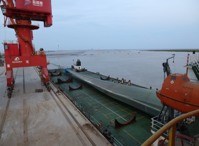 三年來,射陽港區(qū)緊跟集團黨委前進步伐,圍繞黨建領(lǐng)航,堅持守正創(chuàng)新,著力統(tǒng)一思想、凝聚力量,不斷開創(chuàng)新時代思想政治工作新局面。通過細化工作要求、精化工作流程,對照工作目標抓落實,確保實現(xiàn)產(chǎn)量效率逐年遞增。2022年完成全球首套123米風(fēng)電葉片裝卸業(yè)務(wù),不斷刷新風(fēng)電葉片裝卸最長記錄。2023年貨物吞吐量和屬地稅收首次突破“雙1000”目標,并通過一類開放口岸國家級正式驗收。