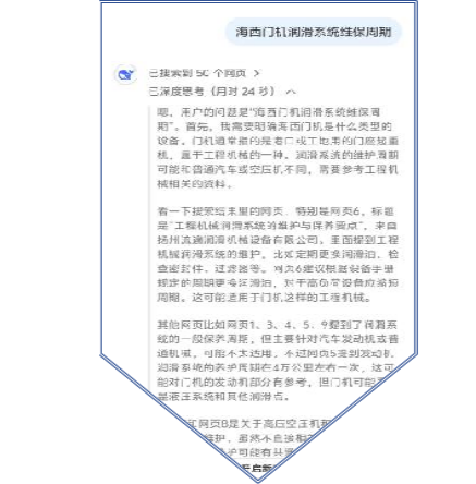 Deep Seek的情景應(yīng)用,暢通消化梗阻,提升運(yùn)營(yíng)效率。 設(shè)備維保、應(yīng)急搶修常常面臨技術(shù)堵點(diǎn)、流程紊亂等問(wèn)題,這些“梗阻”不僅影響作業(yè)效率,還大大增加運(yùn)營(yíng)成本。射陽(yáng)港區(qū)設(shè)備保障組通過(guò)Deep Seek其強(qiáng)大的場(chǎng)景應(yīng)用能力,按照部件故障、維護(hù)保養(yǎng)、更新升級(jí)等類別發(fā)布指令,AI系統(tǒng)能夠快速識(shí)別并解決這些問(wèn)題,保障運(yùn)營(yíng)效率的最大化。