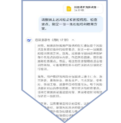 Deep Seek的認(rèn)知升級(jí),直擊實(shí)踐閉環(huán),推動(dòng)持續(xù)優(yōu)化。?Deep Seek不僅僅是一個(gè)工具,更是一個(gè)不斷學(xué)習(xí)和進(jìn)化的AI系統(tǒng)。港區(qū)一線班組通過(guò)運(yùn)用Deep Seek將規(guī)章制度、安全機(jī)制、生產(chǎn)流程等理論模型與實(shí)際場(chǎng)景緊密結(jié)合發(fā)布指令,系統(tǒng)形成完整的生產(chǎn)作業(yè)、教育培訓(xùn)、應(yīng)急管控等方案,持續(xù)刷新認(rèn)知,形成完整的實(shí)踐升級(jí)。這種從“數(shù)據(jù)采集”到“決策支持”的閉環(huán)模式,讓碼頭作業(yè)更加科學(xué)化、智能化。