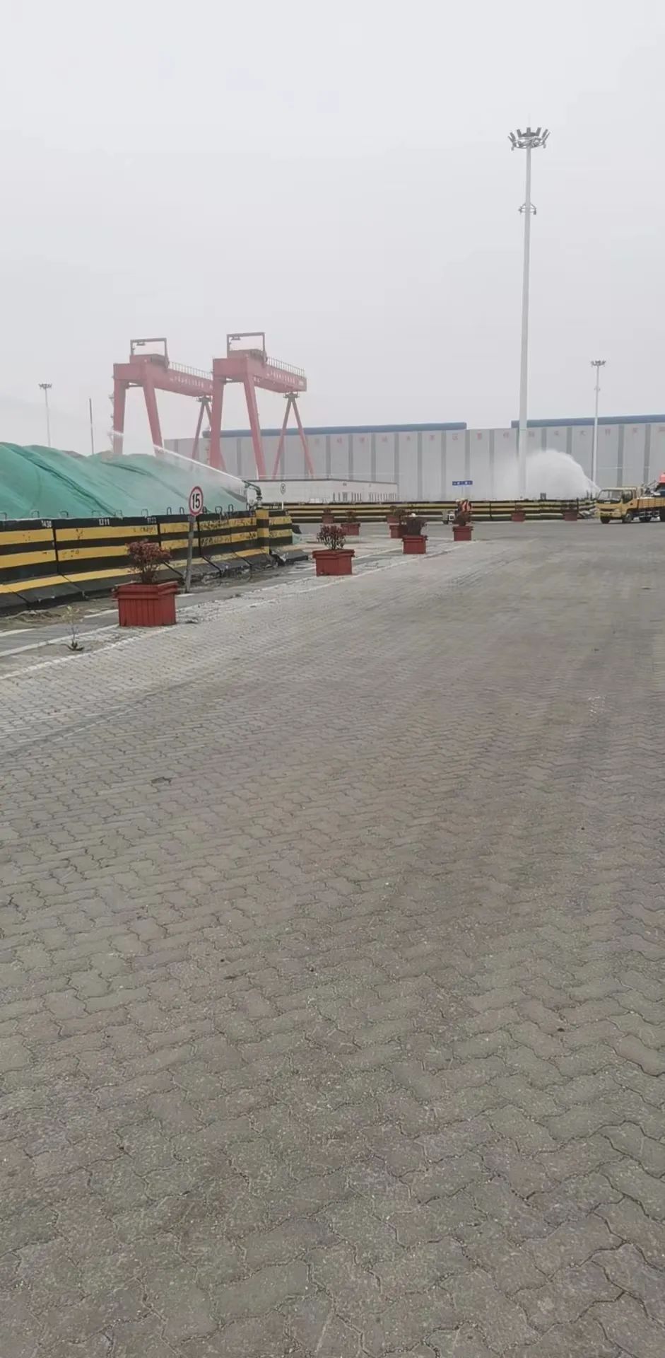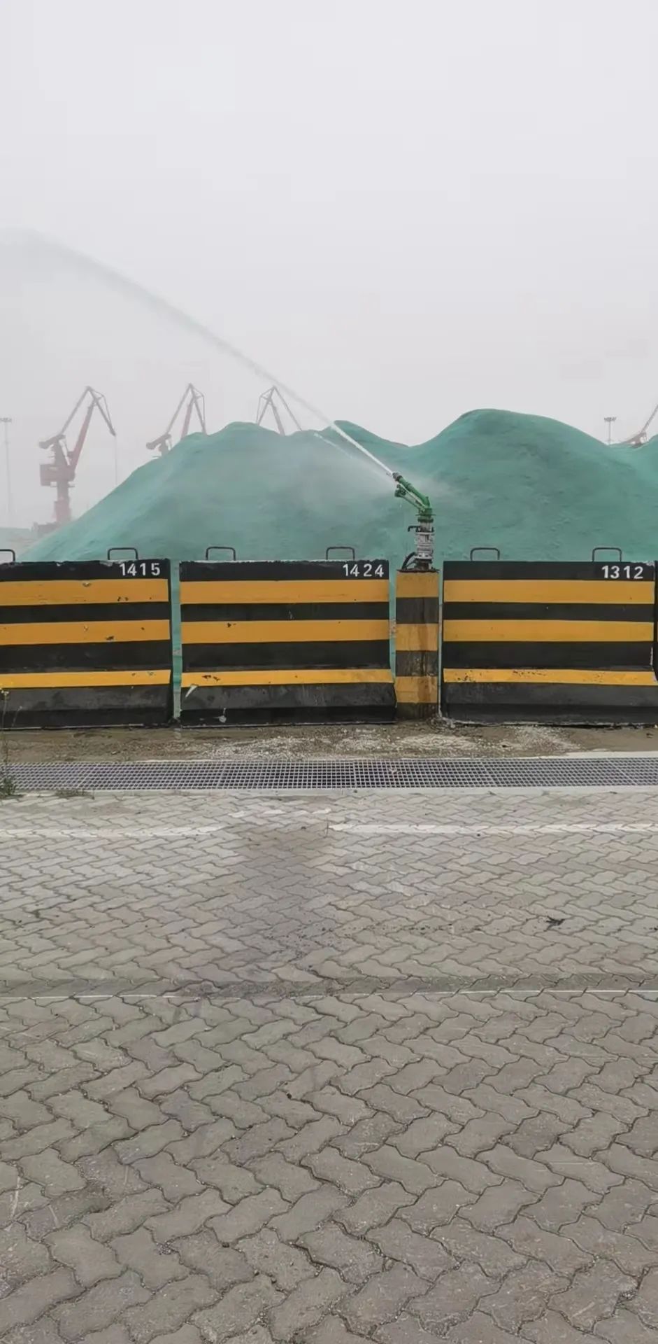 (倉儲部及時開啟堆場噴淋設(shè)備,對苫蓋貨物進行抑塵噴灑)