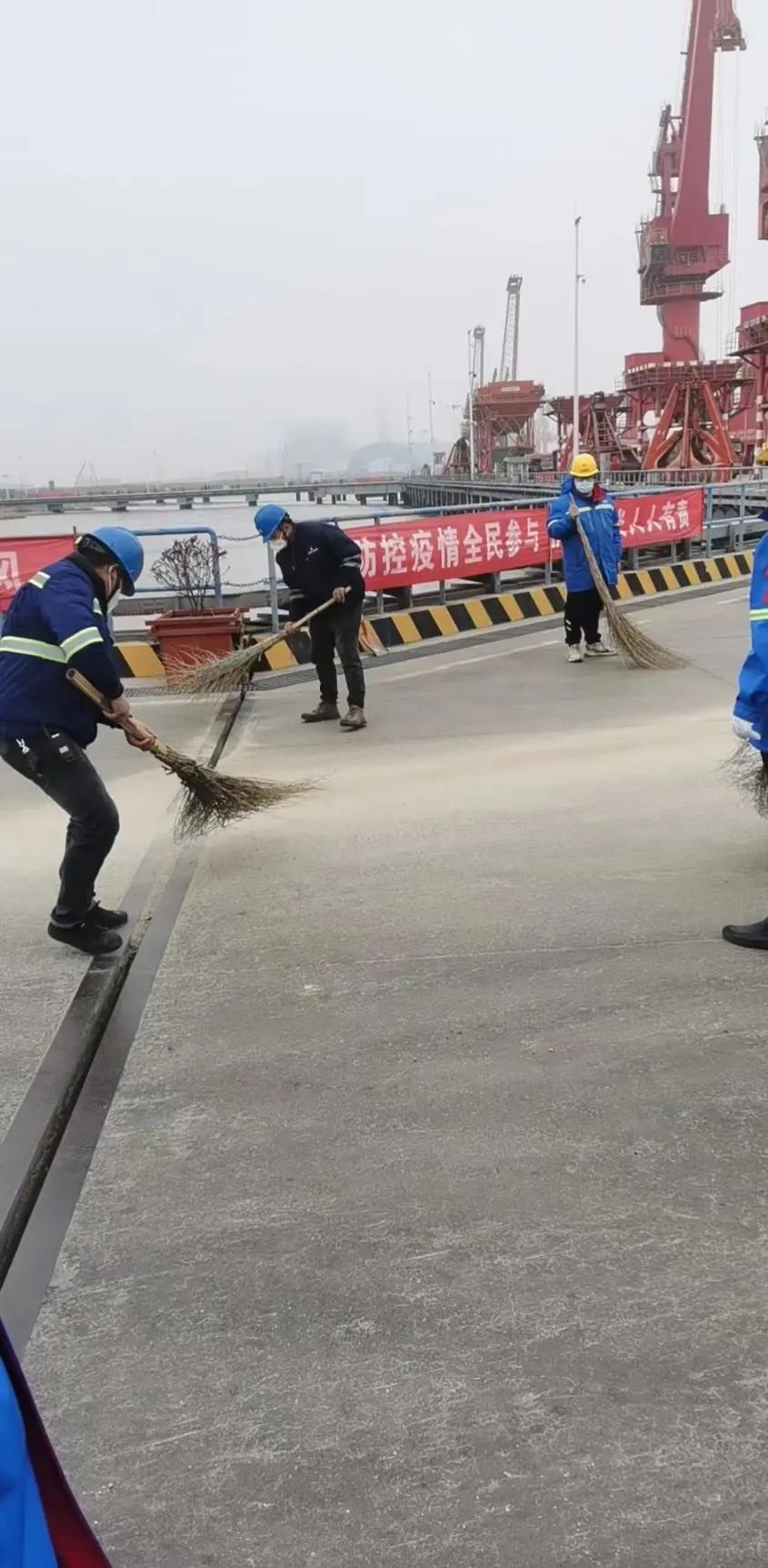 (生產(chǎn)部人員正在碼頭進行拋灑貨物清理)