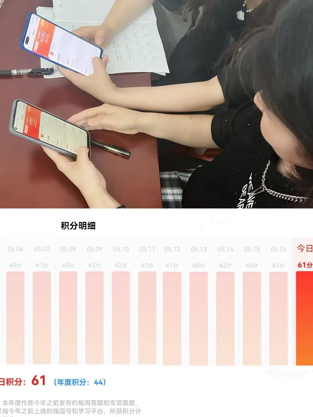 在響水港區(qū)就有一位“卷得很”的同志,她在今年2月底剛加入學習強國,至今以來每日學習日均分58分以上?!敖裉煊譂M分!開心”這是作為她同部門同事經常聽見的話。她就是黨群工作部青年代表胥江安同志。這真的不只是說說,看看“月度榜單”,自加入以來她已經連續(xù)兩月獲得月度學習之星。在她的鞭策學習下,大家紛紛比學趕超,生怕今日學習強國落下。