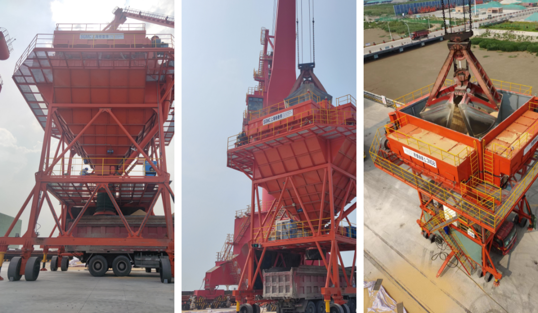 由于糧食作業(yè)粉塵較大,對環(huán)境造成污染較為嚴(yán)重,為確保大輪接卸過程安全順利且符合環(huán)保要求,響水港區(qū)啟用了防塵料斗。本次作業(yè)采用的2臺防塵料斗是響水港區(qū)采購的環(huán)保利器,自重76噸,斗容量達50立方,全身紅色,采用負(fù)壓抑塵系統(tǒng),整機處理風(fēng)量高達72000立方/小時,過濾面積高達1200平米,理論除塵率高達90%,是名副其實的除塵悍將!