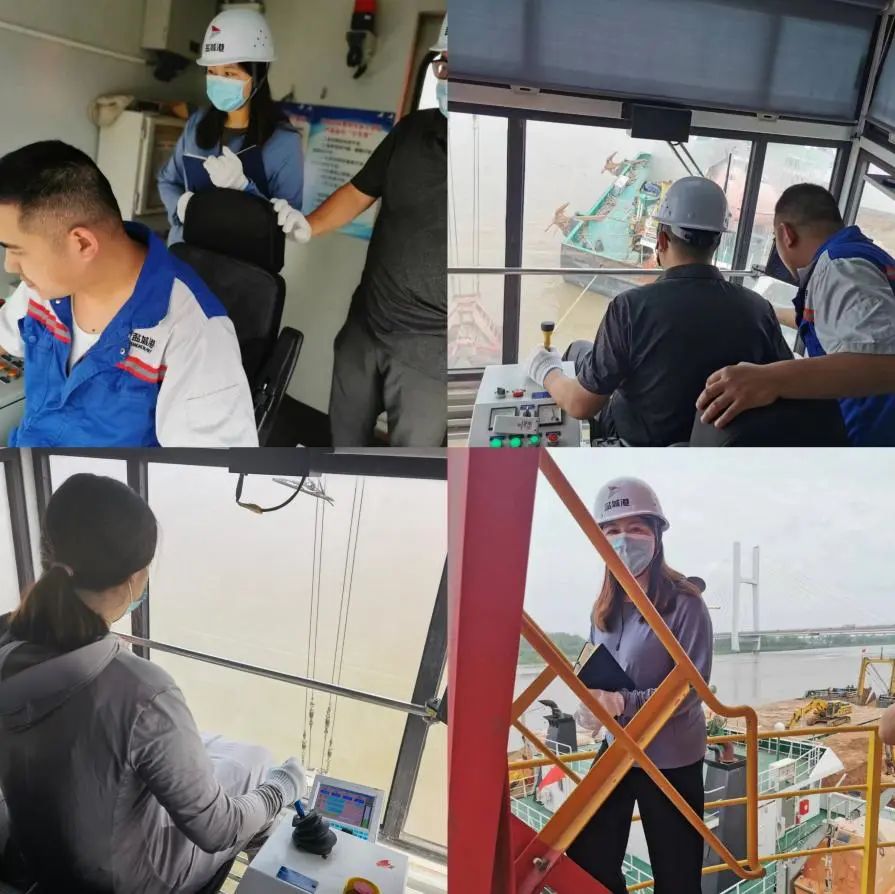 在灌江碼頭一位年輕女孩在門機駕駛室里認真研學。我們都問她:“你一個女孩在這么熱的天里來學門機操作,不怕曬黑嗎?”。她總是笑著說:“因為我想做港口最美‘炎’值啊”。從響水港區(qū)綜合部到一線,掛職人員吳亦凡給灌江碼頭增添了一抹靚麗色彩。從集團機關來的掛職人員宋昊也說:“以前只是坐在辦公室里,現(xiàn)在來到一線感覺真的不一樣。通過學習熟悉了港口的設備以及操作流程,我的工作思路更加開闊了。我會好好珍惜此次機會”。師傅們通過理論與實踐相結合的方式傳授不同貨種的作業(yè)經(jīng)驗,將多年來記錄的工作筆記以及遇到的各類門機故障整理分享給徒弟們。借助師傅的“技術寶典”,掛職人員吳亦凡、宋昊很快就掌握了門機的結構原理以及操作方法。