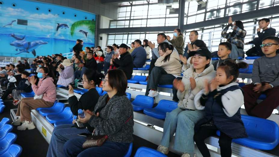 海洋世界劇場(chǎng)的海豚小明星,不僅可愛還身懷絕技,走起路來搖搖擺擺,聰明的海豚們?cè)隈Z獸師的引導(dǎo)下,完成了一個(gè)個(gè)高難度的動(dòng)作,贏得了在場(chǎng)觀眾的陣陣掌聲。