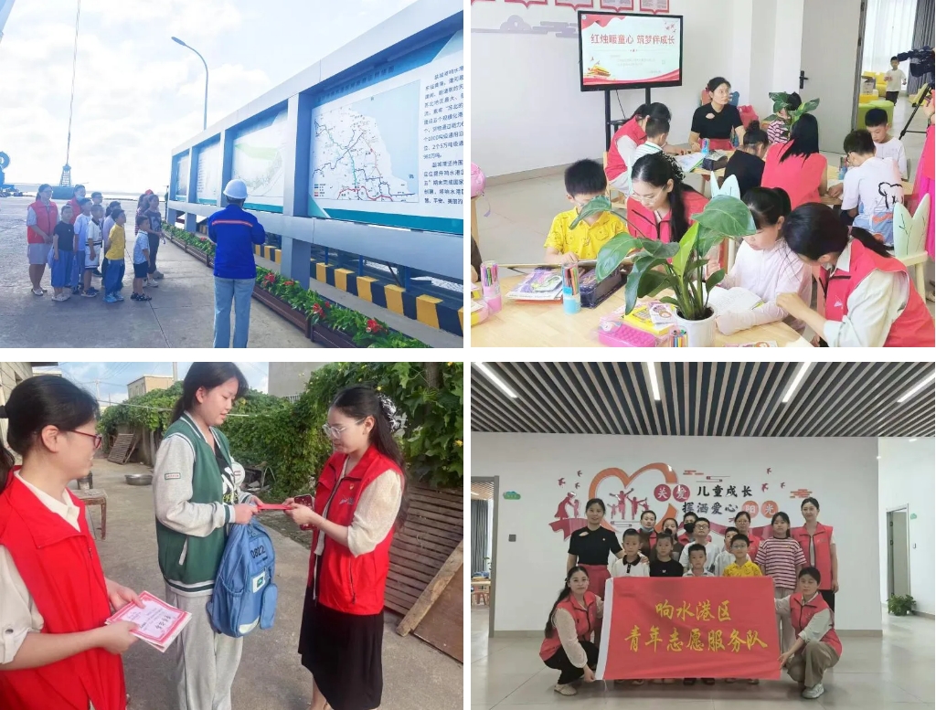 活動當日,兒童們在志愿者的陪護下,乘坐中巴車來到鹽城港響水港區(qū)中心碼頭現場參觀,看到高聳的大吊車和船舶,孩子們興奮不已,不停地向港區(qū)工作人員詢問問題。隨后響水港區(qū)青年志愿者和“愛心媽媽團”來到響水縣陳家港鎮(zhèn)未成年人保護工作站,詳細了解未成年保護工作站的運行情況,詢問兒童們學習及生活情況,并為孩子們贈送了書包、學習用品和助學慰問金。之后與孩子們一起閱讀課外書籍,幫助進行心理疏導與學習鼓勵。最后志愿者上門走訪一名品學兼優(yōu)的高三學生,將助學禮包和慰問金送到該同學的手中,勉勵她認真學習,不要被眼前的困難所嚇倒,期待她明年高考好成績。