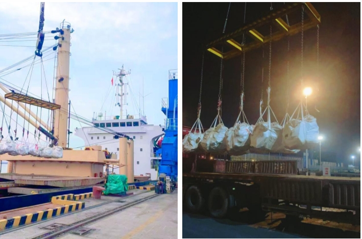 ??吭?#泊位的“臺(tái)松3”輪,有4個(gè)船艙,貨物共有12票貨,船艙內(nèi)分票雜亂無(wú)章且存在破包現(xiàn)象。為順利完成首次外貿(mào)噸袋+框架吊作業(yè),響水港務(wù)生產(chǎn)團(tuán)隊(duì)提前研究、提前部署,制定嚴(yán)格緊密的裝卸方案。同時(shí)為了高效完成此次任務(wù),按照堆場(chǎng)卸貨要求提前采購(gòu)框架吊工具,在保障安全的前提下,力爭(zhēng)最快速度完成外貿(mào)噸袋+框架吊作業(yè)。在生產(chǎn)團(tuán)隊(duì)齊力配合下卸貨作業(yè)按照既定計(jì)劃穩(wěn)步開展,堆場(chǎng)采取正面吊+框架吊具方式進(jìn)行卸包作業(yè),實(shí)現(xiàn)單鉤操作件貨10包,較傳統(tǒng)叉車、吊車,作業(yè)效率提升400%。