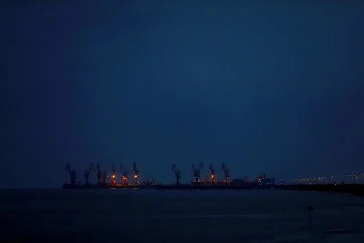 (射陽港區(qū) 丁波 當(dāng)紅色的港灣披上金色的輝煌)