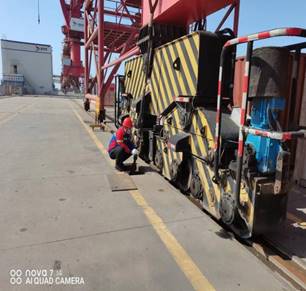鹽城港港口公司糧食碼頭分公司開展“安全生產(chǎn)月”突發(fā)極端天氣機械防風錨定應(yīng)急演練