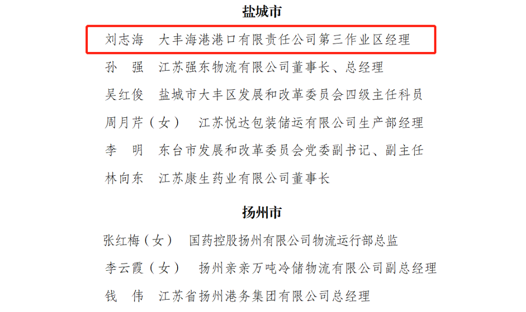 近日,省人力資源社會保障廳、省發(fā)展改革委、省物流產(chǎn)業(yè)促進會、省物流與供應鏈研究院在太倉市聯(lián)合舉辦“2022年度江蘇省重點物流企業(yè)30強”“全省物流行業(yè)先進集體和先進個人”“省級示范物流園區(qū)10強”等授牌儀式,鹽城港集團下屬單位大豐海港港口有限責任公司榮獲“2022年度江蘇省重點物流企業(yè)30強”榮譽表彰,港口公司第三作業(yè)區(qū)經(jīng)理劉志海榮獲“全省物流行業(yè)先進個人”榮譽表彰。