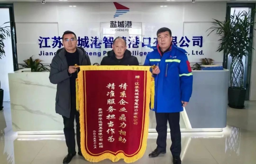 精準(zhǔn)服務(wù)擔(dān)當(dāng)作為”字樣,短短幾字流露出客戶真心實(shí)意的感激之情,承載了客戶與鹽城港合作的百分信任。