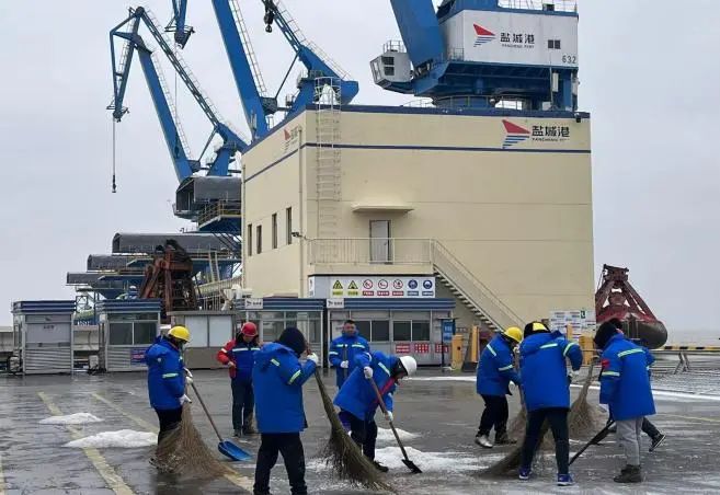 碼頭職工眾志成城 迎風戰(zhàn)雪