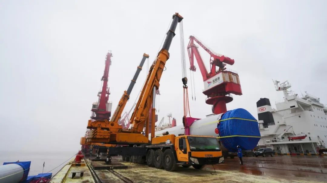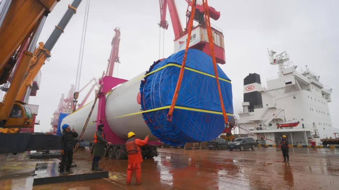 據(jù)介紹,新型旋筒船用風帆系統(tǒng)是利用風能來驅動船舶的新技術,是船舶行業(yè)綠色發(fā)展和智能化操控的一種全新模式,對于推動船舶運輸行業(yè)綠色低碳發(fā)展具有重要示范意義,船用風力風帆主梁更是船舶風帆制造中的關鍵部件,承擔著船舶行駛過程中節(jié)能減排的重要任務。作為一種新型件大量重的超大件貨物,在裝卸、運輸、堆放等作業(yè)過程中,需要高度的專業(yè)性和嚴謹性。