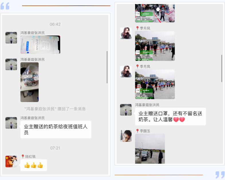 鹽城港物業(yè)人對防疫工作的責(zé)任與擔(dān)當(dāng),業(yè)主們看在眼里,暖在心里。有的自發(fā)捐助口罩、食品、暖寶寶,甚至牛奶、水果給值班“戰(zhàn)士”,讓戰(zhàn)斗在一線的物業(yè)人感到溫暖,聲聲感謝,是肯定,更是責(zé)任。他們時刻要面對疫情,在逆行中研究措施,在奔跑中調(diào)整姿勢。眾志成城、攻堅克難,防控疫情不松懈,這是一份植根鹽城港物業(yè)人內(nèi)心的宣言??挂咔?、守平安,鹽城港物業(yè)人用實際行動共同守護著我們美麗的家園。
