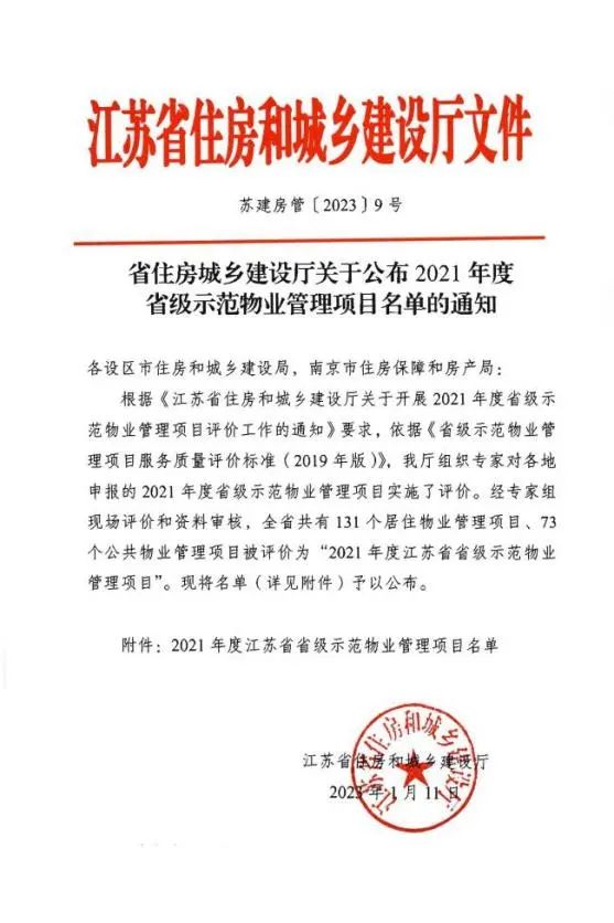 近日,江蘇省住房和城鄉(xiāng)建設廳公布2021年度省級示范物業(yè)管理項目名單,“鹽城港大豐港國際商務大廈(公共物業(yè))”被評價為“2021年度省級示范物業(yè)管理項目”,該項目由鹽城港物業(yè)集團有限公司提供管理服務,該榮譽是江蘇省物業(yè)管理行業(yè)省級最高榮譽。