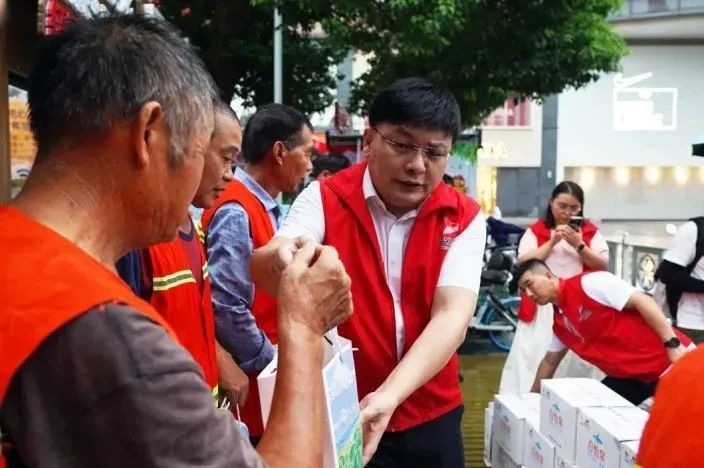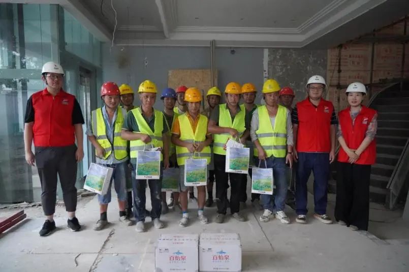 一位項(xiàng)目施工人員接過志愿者遞來的礦泉水,感激地說:“這水真甜,甜到了心里!”“平時(shí)我們總是匆匆忙忙,今天能在這里休息一下,還有這么多好心人關(guān)心我們,真的很感動(dòng)?!币晃豢爝f小哥的樸實(shí)話語,道出了他們的心聲。