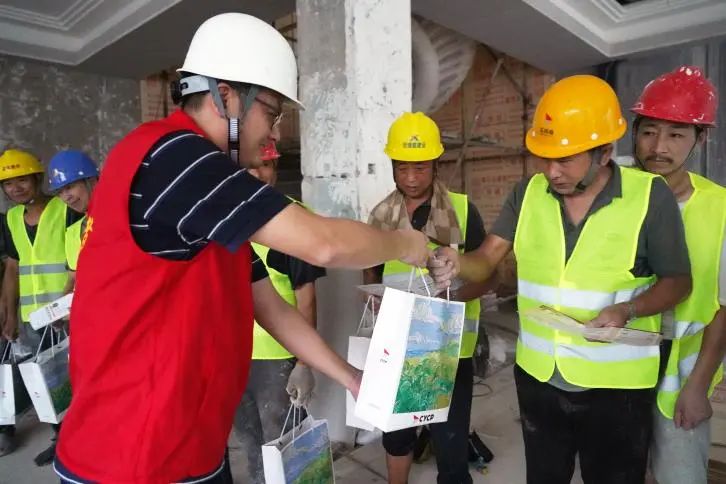 暖心驛站內(nèi)歡聲笑語,氣氛熱烈。來自寶龍社區(qū)的代表、志愿者與港灣建設(shè)集團(tuán)的黨員志愿者們齊聚一堂,一幕幕溫馨的畫面不斷上演。他們不僅為勞動(dòng)者們分發(fā)防暑降溫日用品,還耐心講解安全小常識(shí),確保每一位勞動(dòng)者都能感受到來自社區(qū)和企業(yè)的關(guān)懷。