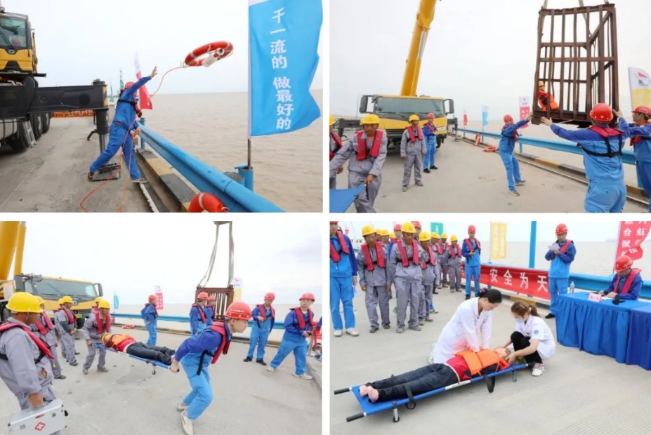 為貫徹落實習近平總書記關于防災減災重要指示精神,全面提升防范自然災害能力,確保極端天氣條件下高效化解危機,近日,港灣建設集團在大豐港區(qū)一期碼頭引橋加固項目現(xiàn)場組織開展防災減災實戰(zhàn)化演練。