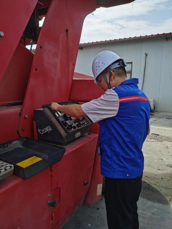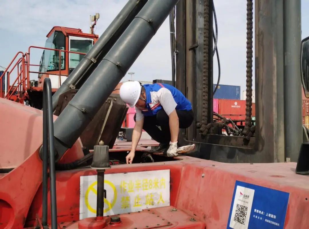 在今年4月初,大豐港區(qū)的一臺(tái)卡爾瑪堆高機(jī)因?yàn)殡姎夤收蠏佸^,嚴(yán)重影響了正常的生產(chǎn)。港區(qū)維修人員第一時(shí)間聯(lián)系售后單位,售后人員通過電話指導(dǎo)排查故障點(diǎn),卻遲遲不能找到原因,唯有進(jìn)行現(xiàn)場(chǎng)檢查排故。當(dāng)時(shí)上海疫情嚴(yán)重,售后人員需要層層報(bào)備、審批、隔離后才能到達(dá)現(xiàn)場(chǎng),漫長的等待期將嚴(yán)重影響集裝箱的正常作業(yè)進(jìn)度。此時(shí)現(xiàn)場(chǎng)維修人員打電話給倪旅軍同志咨詢其他故障時(shí),偶然提到了這臺(tái)機(jī)的問題,倪旅軍同志知曉后立即驅(qū)車前往集裝箱堆場(chǎng)了解故障情況。經(jīng)過短短20分鐘的現(xiàn)場(chǎng)排查,他成功找到并解決了堆高機(jī)的故障,使之能夠正常作業(yè)。
