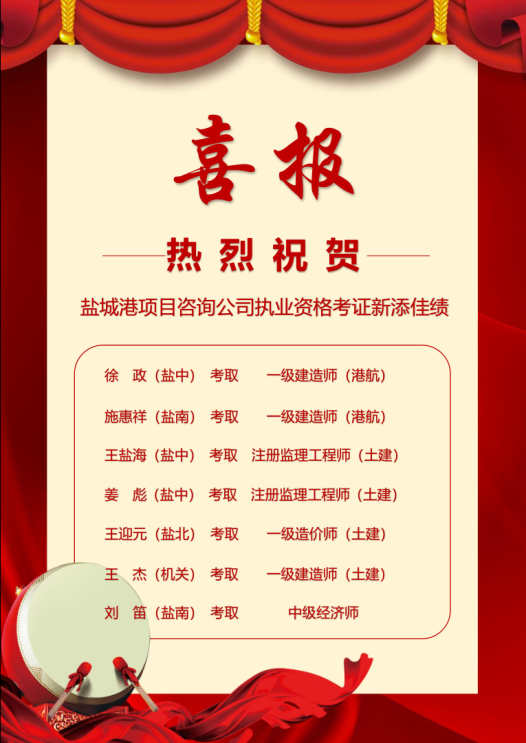 不負(fù)春日好韶光,工學(xué)統(tǒng)籌兩不誤。近期,項(xiàng)目咨詢公司在各類執(zhí)業(yè)資格證書(shū)考取工作中新添佳績(jī)。過(guò)去一季度,共有7人考取一級(jí)建造師(港航)、注冊(cè)監(jiān)理工程師(土建)、中級(jí)經(jīng)濟(jì)師等執(zhí)業(yè)資格證書(shū),進(jìn)一步提高了公司持證人員總量,豐富了持證類型,對(duì)建筑工程、港口與航道工程等工作提供了有力支撐。