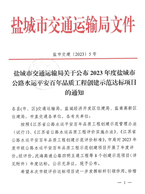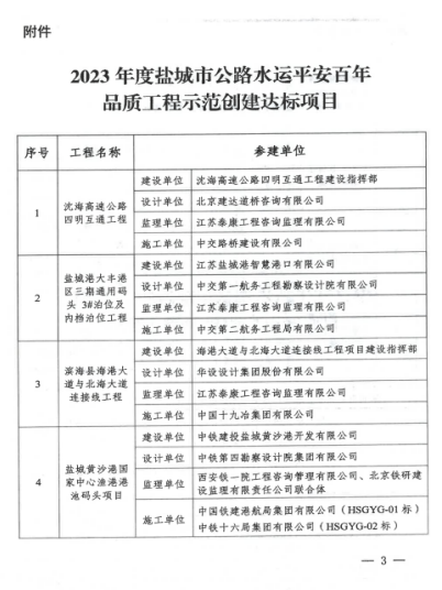 近日,鹽城市交通運輸局發(fā)布2023年度鹽城市公路水運平安百年品質(zhì)工程創(chuàng)建示范達標(biāo)項目的通知,大豐港區(qū)通用碼頭3#泊位項目成功當(dāng)選。