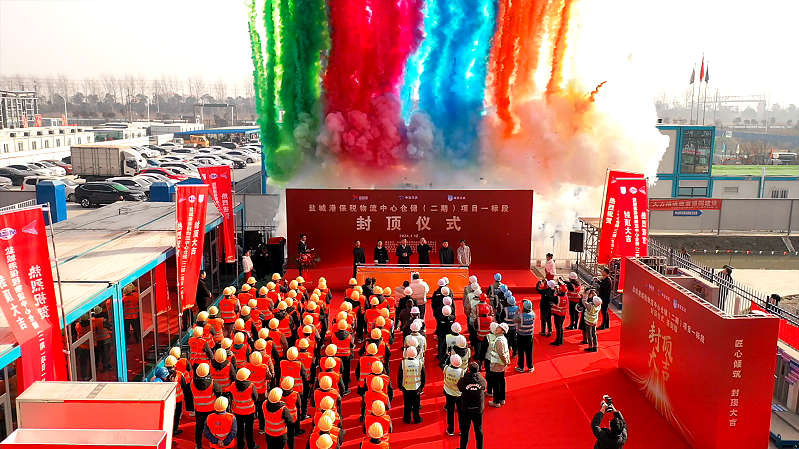 1月12日上午,鹽城港保稅物流中心在建項(xiàng)目倉(cāng)儲(chǔ)(二期)一標(biāo)段C1、C2倉(cāng)庫(kù)迎來(lái)主體封頂?shù)南矐c日子,為項(xiàng)目2024年順利竣工奠定了基礎(chǔ)。