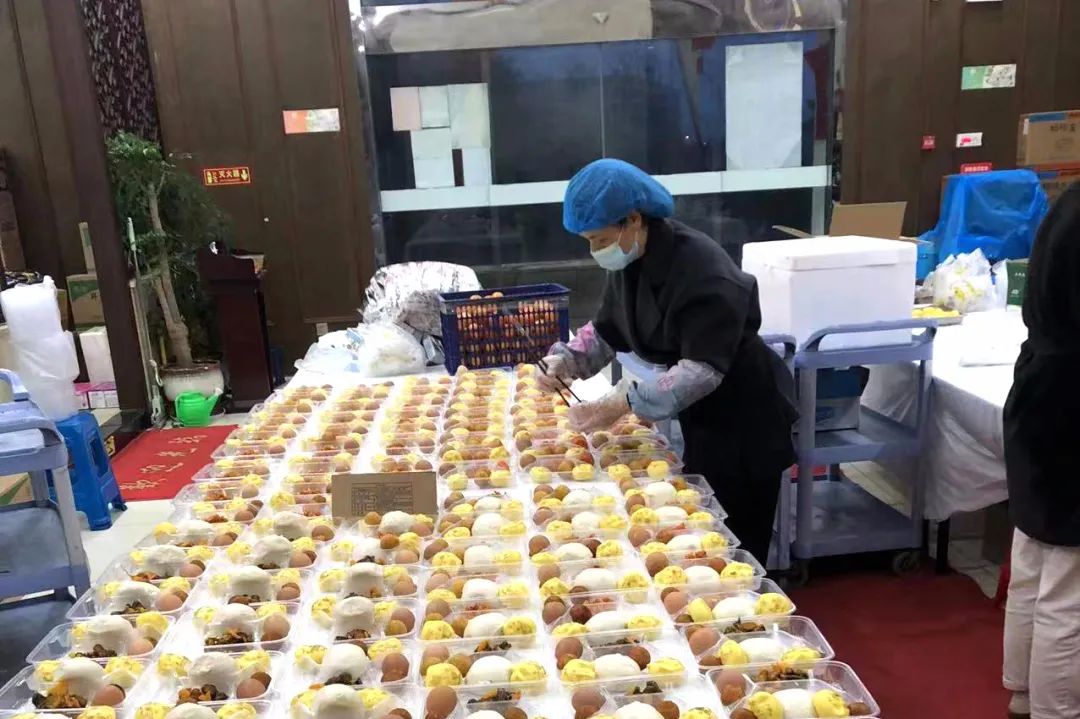 天空微微泛白,海鮮酒店廚房已經(jīng)燈火通明,面點(diǎn)師傅早早到崗做早餐,工作人員將準(zhǔn)備好的570份早餐配送至健康驛站等六個(gè)疫情防控卡口,為奮戰(zhàn)在一線的抗疫人士提供暖心早餐,風(fēng)雨無阻。