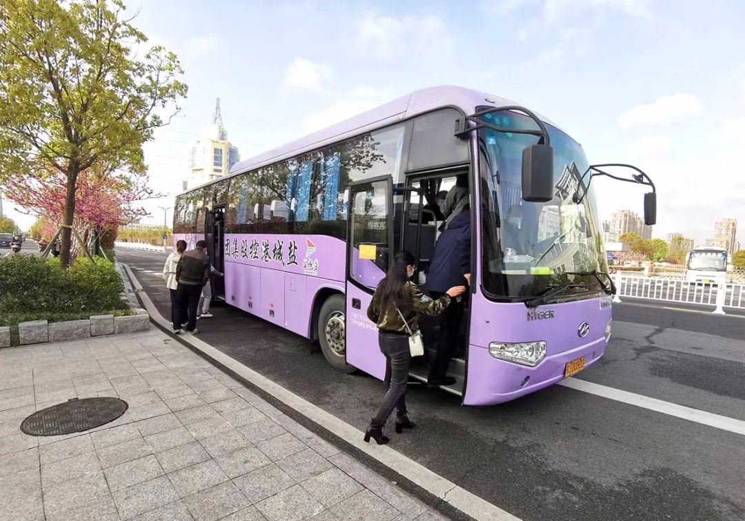 汽服公司的大巴準(zhǔn)時(shí)發(fā)車,保障通勤,測(cè)溫、驗(yàn)碼、登記必不可少。