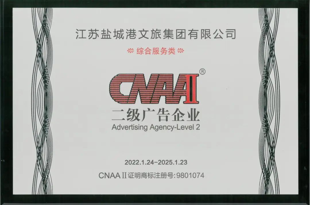 在鹽城港集團(tuán)上下喜迎集團(tuán)成立兩周年之際,6月13日,文旅集團(tuán)從中國(guó)廣告協(xié)會(huì)收到一份沉甸甸的賀禮——編號(hào)9801074“CNAAII”綜合服務(wù)類(lèi)二級(jí)廣告企業(yè)資質(zhì)牌匾。這是目前鹽城地區(qū)唯一一家通過(guò)綜合服務(wù)類(lèi)二級(jí)廣告企業(yè)資質(zhì)等級(jí)認(rèn)定企業(yè),標(biāo)志著鹽城港文旅集團(tuán)資質(zhì)創(chuàng)建取得了新的突破,為鹽城港集團(tuán)成立兩周年交出了一份亮眼的生日賀禮。