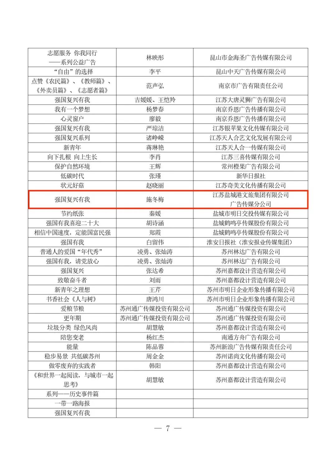 鹽城港文旅集團在省優(yōu)秀廣告作品大賽獲獎