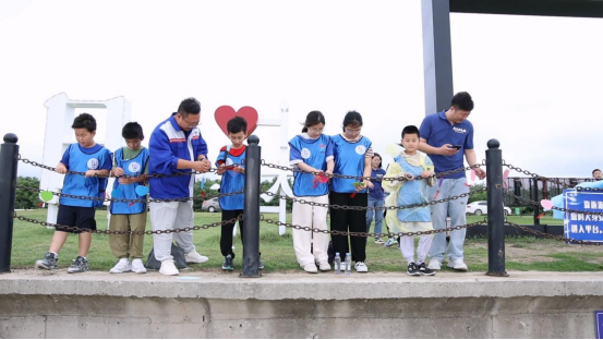 午時的日出海灣,遠離城市喧囂,呦呦鹿鳴不時在耳畔回響,海風吹拂著同學們的臉龐,帶來了海水的咸味和清新的空氣。他們站在海邊的觀景臺上,感受著大自然的壯麗和寧靜,同學們在許愿牌上寫下自己的心愿,寄予大海。