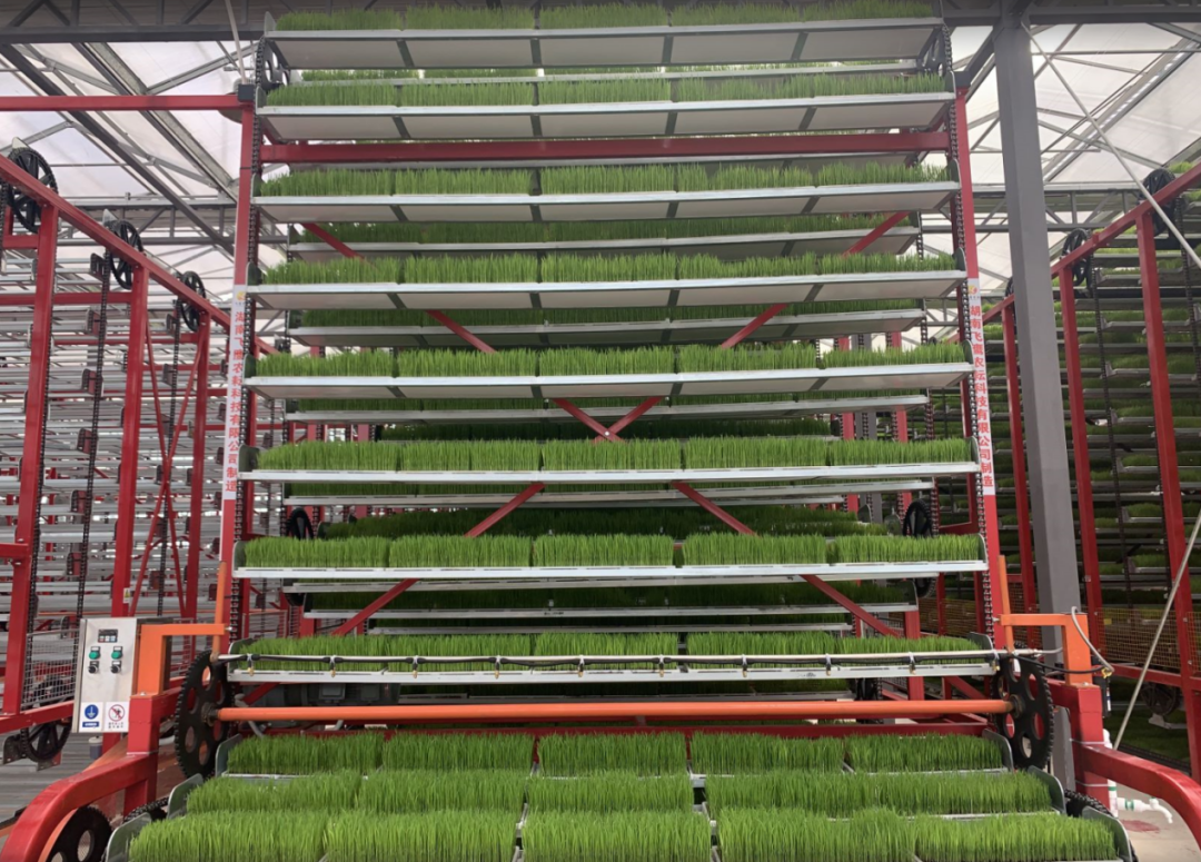 在智能化育秧生產(chǎn)車間,16臺嶄新的大型智能化育秧機(jī)正在開足馬力,抓緊時(shí)間培育今年首批常規(guī)稻秧苗,層層疊疊的育秧盤內(nèi),綠油油的秧苗正茁壯成長。隨著齒輪轉(zhuǎn)動,育秧盤隨著自動滑軌上下循環(huán),育秧床上裝有光照傳感器、二氧化碳傳感器等設(shè)備,可實(shí)現(xiàn)調(diào)溫、調(diào)濕、補(bǔ)水、增光完全自動化、智能化,一次性可育苗600多畝。這種培育方式,不僅能節(jié)約土地、種子、肥料和人工成本,還可縮短育秧周期,保證預(yù)期移栽時(shí)間,為后期機(jī)械化插秧和田間管理奠定堅(jiān)實(shí)基礎(chǔ),跑出水稻提質(zhì)增產(chǎn)“加速度”。