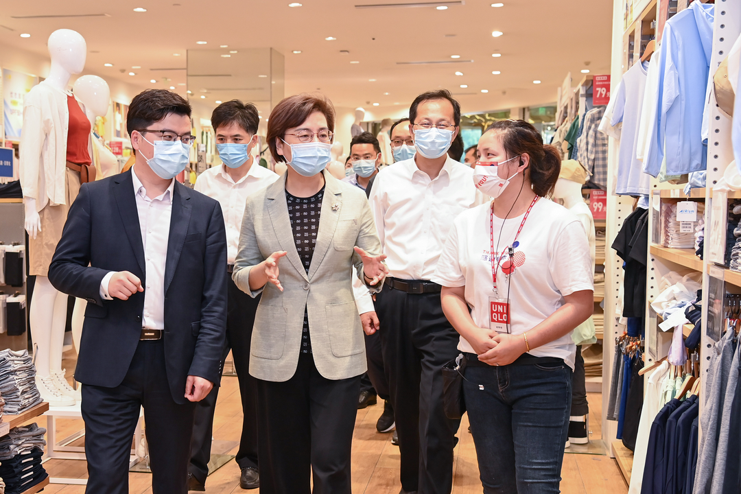 “政策落實(shí)得怎么樣?目前經(jīng)營(yíng)狀況如何?還有什么困難需要解決?”徐纓先后來(lái)到新弄里和大有境商業(yè)綜合體,隨機(jī)走進(jìn)正在營(yíng)業(yè)的書店、超市、飯店、酒店、運(yùn)動(dòng)館、服飾店和影城等,實(shí)地查看復(fù)工復(fù)市情況,了解企業(yè)經(jīng)營(yíng)狀況,與店主深入交流,詢問(wèn)大家的所思所想所盼,勉勵(lì)要堅(jiān)定信心、政企攜手,共同努力克服疫情帶來(lái)的不利影響。各層各級(jí)要精準(zhǔn)施策、靠前發(fā)力,加快落實(shí)國(guó)家和省市出臺(tái)的系列組合式紓困惠企政策措施,讓各類市場(chǎng)主體更有獲得感。