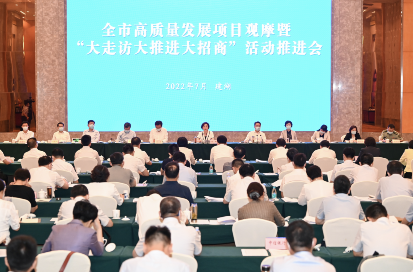 7月27日,我市在建湖縣召開全市高質(zhì)量發(fā)展項(xiàng)目觀摩暨“大走訪大推進(jìn)大招商”活動(dòng)推進(jìn)會(huì)。市委書記徐纓主持會(huì)議并講話,強(qiáng)調(diào)要堅(jiān)持以習(xí)近平新時(shí)代中國(guó)特色社會(huì)主義思想為指導(dǎo),認(rèn)真貫徹落實(shí)黨中央“疫情要防住、經(jīng)濟(jì)要穩(wěn)住、發(fā)展要安全”的重大要求和省委常委會(huì)會(huì)議精神,扎實(shí)開展“企業(yè)大走訪、項(xiàng)目大推進(jìn)、產(chǎn)業(yè)大招商”活動(dòng),全力跑出加速度、拼出新業(yè)績(jī),以項(xiàng)目大突破、產(chǎn)業(yè)大發(fā)展鞏固上半年來(lái)之不易的良好發(fā)展態(tài)勢(shì),著力推動(dòng)全市經(jīng)濟(jì)穩(wěn)健增長(zhǎng),為勇當(dāng)沿海地區(qū)高質(zhì)量發(fā)展排頭兵奠定堅(jiān)實(shí)基礎(chǔ)。市委副書記、市長(zhǎng)周斌對(duì)做好當(dāng)前經(jīng)濟(jì)工作作部署。市人大常委會(huì)主任王榮、市政協(xié)主席陳紅紅等出席。