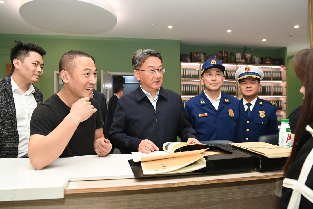 寶龍廣場商業(yè)綜合體人潮涌動、節(jié)日氛圍濃厚。周斌走進服飾、餐飲、“劇本殺”等經(jīng)營場所,認真檢查安全管理措施落實、消防器材配備、燃氣安全等情況,并與企業(yè)負責人和商家深入交流,共同探討更好激發(fā)消費活力、滿足群眾多元化消費需求的有效途徑。在消防值班室,周斌仔細察看消防系統(tǒng)運行和值班管理情況。他叮囑企業(yè)負責人要時刻敲響安全警鐘,壓緊壓實主體責任,營造安全放心購物環(huán)境。要學習借鑒外地經(jīng)驗,進一步優(yōu)化消費環(huán)境,打造新型業(yè)態(tài)場景,不斷滿足群眾美好生活需要。