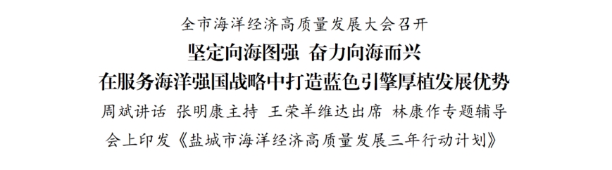 1月12日,全市海洋經(jīng)濟(jì)高質(zhì)量發(fā)展大會召開。市委書記周斌出席并講話。他強(qiáng)調(diào),全市上下要深入學(xué)習(xí)貫徹習(xí)近平總書記在鹽城考察時的重要指示精神和關(guān)于海洋強(qiáng)國重要論述,認(rèn)真貫徹落實(shí)省委省政府部署要求,全面吹響海洋經(jīng)濟(jì)高質(zhì)量發(fā)展沖鋒號,以“勇當(dāng)排頭兵”的奮進(jìn)姿態(tài),用好戰(zhàn)略機(jī)遇,堅(jiān)定向海圖強(qiáng),努力把鹽城建設(shè)成全省海洋經(jīng)濟(jì)的重要支撐、全國沿海地區(qū)海洋經(jīng)濟(jì)創(chuàng)新發(fā)展的新高地。市委副書記、市長張明康主持,市人大常委會主任王榮,市委副書記、統(tǒng)戰(zhàn)部部長羊維達(dá)出席。省發(fā)改委副主任林康應(yīng)邀作專題輔導(dǎo)。