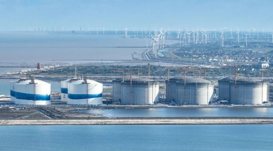 “綠能港”是一座國內(nèi)規(guī)??壳暗囊夯烊粴鈨浠兀荒晏幚淼囊夯烊粴饪晒┙K全省居民用氣28個月,對保障我國能源安全、優(yōu)化長三角區(qū)域內(nèi)能源結(jié)構和實現(xiàn)“雙碳”目標具有重要意義。