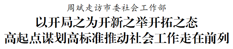 組建黨委社會工作部,是以習(xí)近平同志為核心的黨中央堅(jiān)持和加強(qiáng)黨的全面領(lǐng)導(dǎo)、推進(jìn)國家治理體系和治理能力現(xiàn)代化的重大舉措。市委堅(jiān)決貫徹落實(shí)黨中央和省委決策部署,組建成立社會工作部。走訪中,周斌察看市委社會工作部辦公環(huán)境,與工作人員深入交流,了解大家崗位職責(zé)以及工作磨合情況,鼓勵要切實(shí)增強(qiáng)責(zé)任感、使命感、榮譽(yù)感,圍繞機(jī)構(gòu)職能履職盡責(zé),相互配合、促進(jìn)融合、做好聯(lián)動,在新征程上展現(xiàn)新氣象、體現(xiàn)新?lián)?dāng)、作出新貢獻(xiàn)。