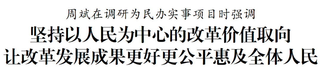 周斌在調(diào)研中指出,各地各部門要深入學(xué)習(xí)貫徹黨的二十屆三中全會(huì)精神,從人民的整體利益、根本利益、長遠(yuǎn)利益出發(fā)謀劃和推進(jìn)改革,完善基本公共服務(wù)制度體系,推出更多民生所急、民心所向的舉措,多辦惠民生、暖民心、順民意的實(shí)事。要緊盯目標(biāo)任務(wù),堅(jiān)持盡力而為、量力而行,加快推進(jìn)民生項(xiàng)目落地見效,持續(xù)增進(jìn)民生福祉,為勇當(dāng)發(fā)展新質(zhì)生產(chǎn)力重要陣地“碳路先鋒”提供有力支撐。
