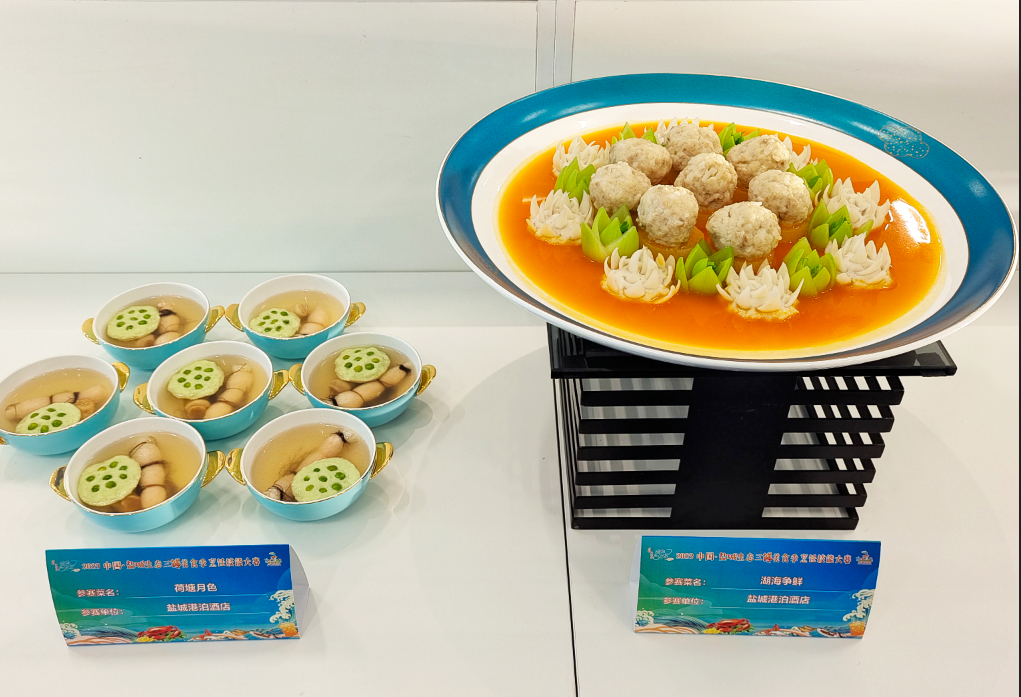 為弘揚(yáng)鹽城地方美食文化,進(jìn)一步推動(dòng)鹽城市旅游業(yè)發(fā)展,中國(guó)飯店協(xié)會(huì)于2023年5月17日在射陽(yáng)縣黃沙港舉辦2023鹽城生態(tài)三鮮(海鮮、湖鮮、河鮮)美食季烹飪技能大賽。當(dāng)天,來(lái)自各地的參賽選手同臺(tái)競(jìng)技,評(píng)委從作品的色、香、味、形、營(yíng)養(yǎng)等方面進(jìn)行綜合評(píng)價(jià),經(jīng)過(guò)激烈的角逐,文旅集團(tuán)港泊半島酒店行政總廚李勇憑借“荷塘月色”“湖海爭(zhēng)鮮”兩項(xiàng)菜品喜獲此次大賽銀獎(jiǎng)。